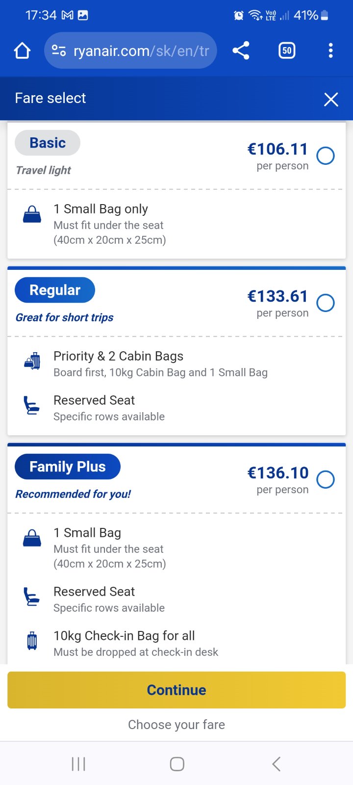 bud si vyberies 1) a potom v dalsich krokoch zaklikavas, ci chces este navyse batozinu (napr. len pre jedneho z ludi, co cestuju), vyberas, ci chces priority, miesta atd.,