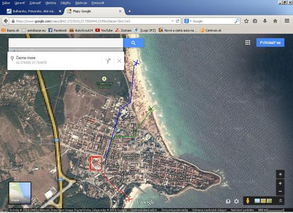 @141984 cestovky s tými vzdialenosťami fakt dosť odrbávajú..... tuším sme písali o tom, že budete bývať niekde pri AQUAPARKU.... Posielam Ti obrázok. V červenom štvorci je Aquapark. Červená čiara je cesta na južnú pláž a podľa mierky to vyzerá na nejakých 450 m, modrá čiara je cesta na severnú pláž - jej zadnú časť, kde je menej ľudí a výborne a od Aquaparku to vyzerá aj na 900 m a zelená čiara je do stredu severnej pláže, kde je plno ľudí a málo miesta a podľa mierky tých 700 m. cca.