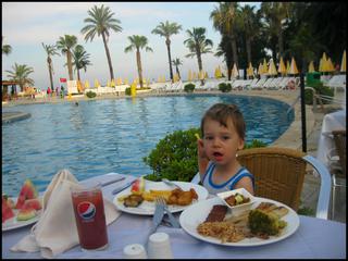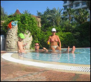 pocasie uplne parada nejakych 32stupnov,v okolitom Turecku vsade vkuse prsalo,len na Tur.riviere nie-zevraj tie mraky zachytavaju hory preto tam malokedy zajde dázd/aspon tak nam povedala delegatka/...si neviem fakt predstavit keby ze sme tam boli v juli-auguste,musi byt pekota poriadna...
