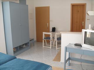 @misela24 ubytko sme si hľadali na mieste, prišli sme tam až o 20tej večer, išli sme z jedného do druhého, všade sme sa pýtali a nejak všetko obsadené, tak už som bola trochu nervózna, jedno voľné - kutica malá, chceli 5% Euro za noc, hľadali sme ďalej a našli sme - síce maličká izba s kuchynkou spolu, ale nič tomu nechýbalo tak sme to vzali. prikladám fotky, ak chceš, dám ti kontakt, môžeš si zavolať priamo majiteľovi. V sezóne môže byť vyššia cena, ale my sme platili len 40 Euro za noc. Bola to teda jedna izba v ktorej bola aj kuchynka, riady boli pekné, nerezové hrnce, dobrá panvica, šálky na kávu, príbory, nože,... Na izbe bola klíma, teraska, minikúpeľňa sWC, umývadlo, sprcha. Bolo to malé, ale mali aj iné apartmány, tam už boli 2 miestnosti + kúpeľňa. Kladnička bola malá s mraziakom, dali nám ale k dispozícii aj spoločnú chladničku s veľmýk mraziakom na chodbe, mohla som použiť aj ich práčku, ak by som chcela. Domáci boli strašní pohoďáci. Auto sme mali vo dvore, tak pohoda, platili sme až na konci pri odchode a síce se nemali výhľad na more, ale od mora sme to mali tak 20 metrov. Do pekárne 3Ometrov, do obchodu 100metrov. Úplná pohoda.