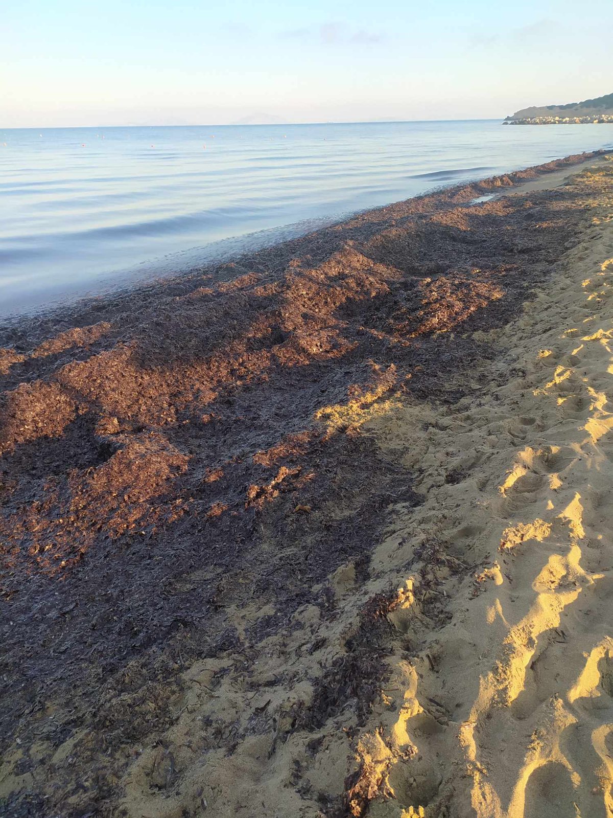 Za celý týždeň, neodpratali ani kúsok riasy, myslím si že pláž ocenená modrou vlajkou by mala byť udržiavaná, povedali nám že keď príde morský vietor ktorý bude fúkať opačný smer, tak to more vezme naspäť, no za celý týždeň sa tak nestalo.