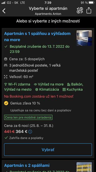 @katica06 nebojte sa na booking. com sa ešte určite dačo nájde. Väčšinou v tichej lokalite skôr. Väčšina si zarezervujte viac a potom to rušia. Nie raz sme našli. Len treba tomu venovať čas a hľadať. My sme väčšinou vždy chodili lacno. S raňajkami pre troch sme boli aj za 260 na týždeň. Ale jasne ze najlepšie sa vychyta. Ale určite aj na poslednú chvíľu sa dá dobré nájsť. Aj keď žiaľ Chorvátsko je drahé všeobecne.