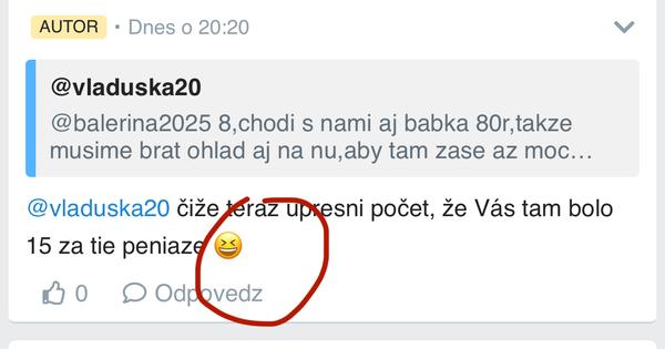 @misiak7777 tebe príde normálne o niekom koho nepoznáš napísať ze je tupá trúbka len skrz toho, že platila svojimi vlastnými peniazmi niečo na dovolenke?