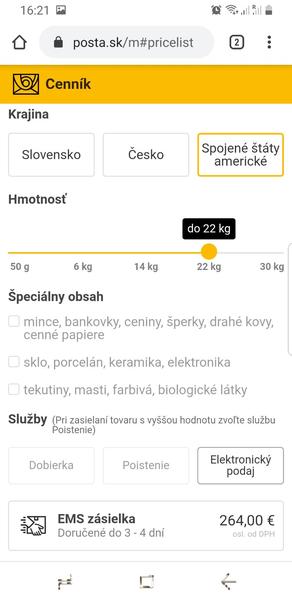 @slavkasobanska musis pozriet info dorucovatela ked chces za 3/4dni ti to dhl doruci za 35-50e uz neviem presne a posta za 3-4tyzdne tiez maju tarifi pogoogli.