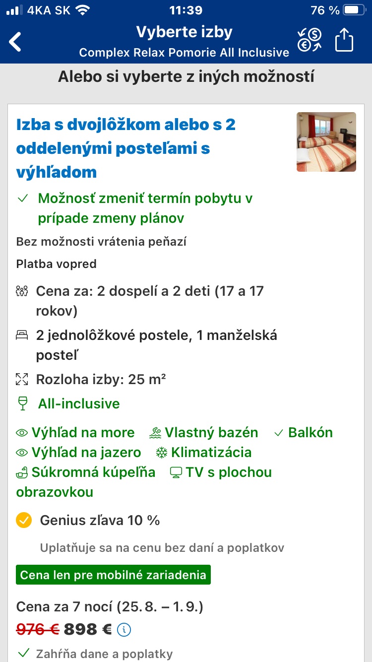 Ja teda airstop pozeram pravidelne, dovolenky zacinam pozerat tam, ked hladam napr starym rodicom. To si ako vyklika, ktory je to hotel, 4 na izbe alebo 2 izby po dvoch? Lebo mne to tu sumu nenaslo. A velakrat, ked si kliknem na iverenie ceny, tak to vyskoci.