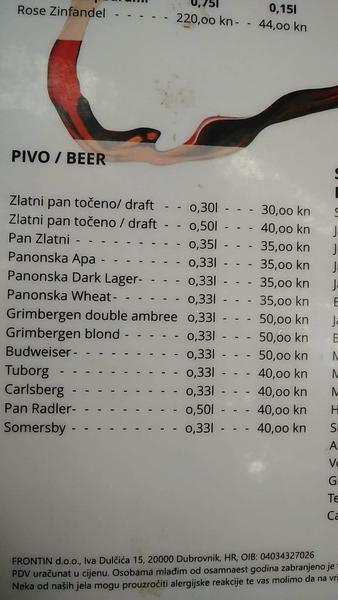 Sestra je teraz v Dubrovniku. Viem ze tam je extremne draho ale ako zasa si myslim ze odtial potial. Pripajam aktualny cennik nie z "hlavnej ulice"