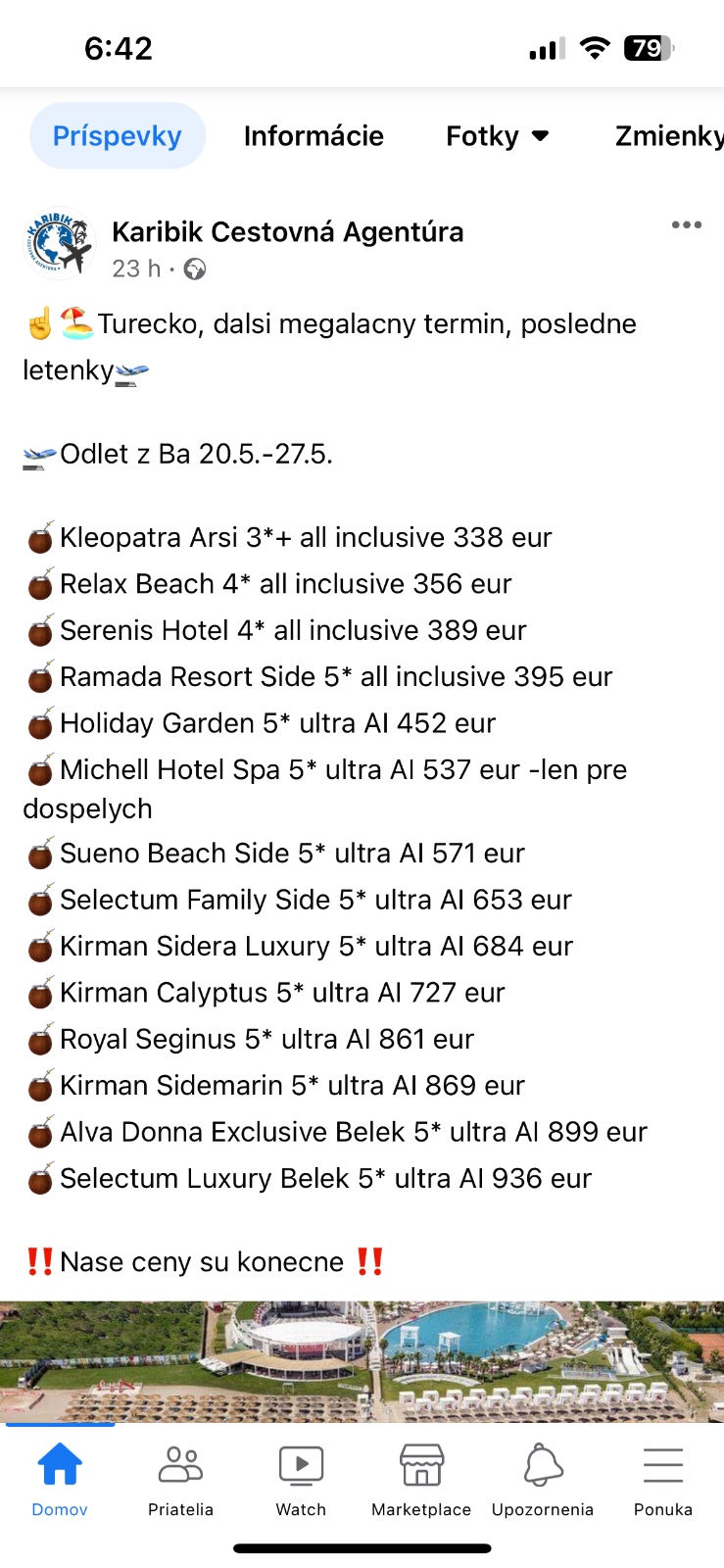 Pri tejto cene nemôžeš očakávať žiadny luxus. Zisti si hlavne, či je v cene transfer do hotela z letiska. V rakúskych a nemeckých cestovkach to v cene byť nemusí. A tie taxíky tá vyjdú dosť veľa peňazí. Tie časy odletu a príletu sú šialené. V Turecku nie sú ojedinelé 2 hodinove transferi. Prvý deň tam priletis pred polnocou, na ubytko sa možno dostaneš o jednej ráno. Späť pôjdeš z hotela o tretej ráno....Rozumiem že niekedy budget nepustí a chces ísť k moru. Pozri recenzie na tripadvisore a holidaycheck a uvidíš. Pri veľmi lacnom úbytku sa môže jednať aj o tzv Sparzimmer (izby horšej kategórie v danom hoteli, v pivnici, pri smetiakoch, nad kuchyňou a pod).