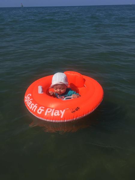 Nas maly mal 17mes ked bol pri mori v Bulharsku. Na plazi do 11h....potom obed...spal v tieni na terase....a po 15tej späť na plaž. Určite sandalky do vody (kvoli horucemu piesku), čiapočka s takou predlženou častou az po ramienka. Navrch sme mali pre maleho tričko do vody s UV faktorom 50, plienky do vody (potom prezliecť hned do suchej). Na plazi sa mi osvedčil detsky minibazenik. Maly sa prečlapkal v "sladkej vode zo sprchy" a v tieni keď už bolo "mora dosť"