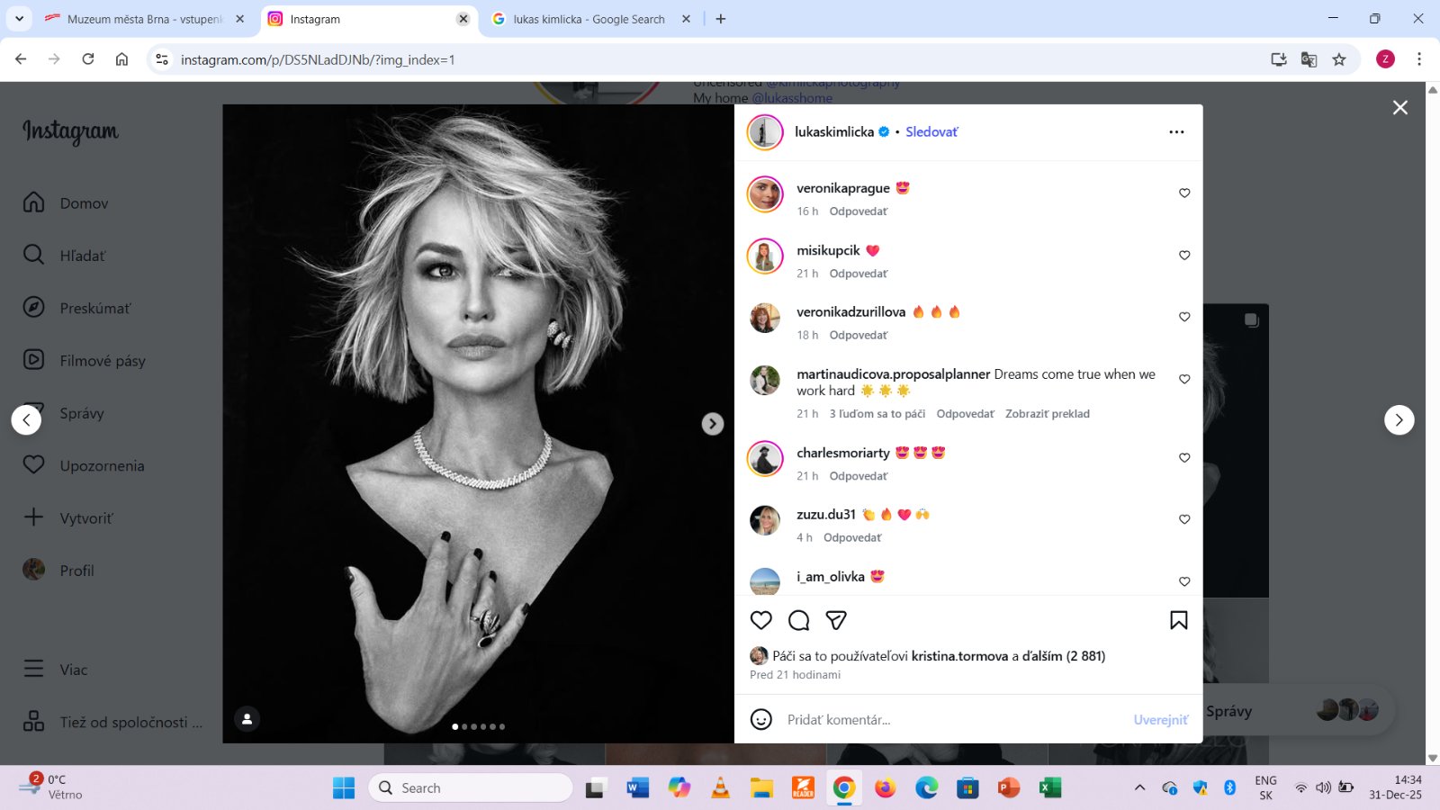 No ja som si pozerala po tom ako ma šoklo ( doslovne) to video s Krausom aj iné videá na YouTube. A môžem skonštatovať: 1. Ako mladá bola dokonala 2. Ešte pred pár rokmi vedela úplne plynule rozprávať po slovensky bez anglicizmov, bez afektovania, normálna milá baba 3. Videla som aj video s novým frajerom, jedna hrôza, vyzerá že jej úplne preplo, pubertáčka afektovana 4. Vzhľad v 50-tie nejdem hodnotiť, starneme všetci a ona má stále zákazky v modelingu a postavu má stále super. Na tvári už vidno vek ale 55 nie je 40 kde žena môže vyzerať ešte stále veľmi exkluzívne