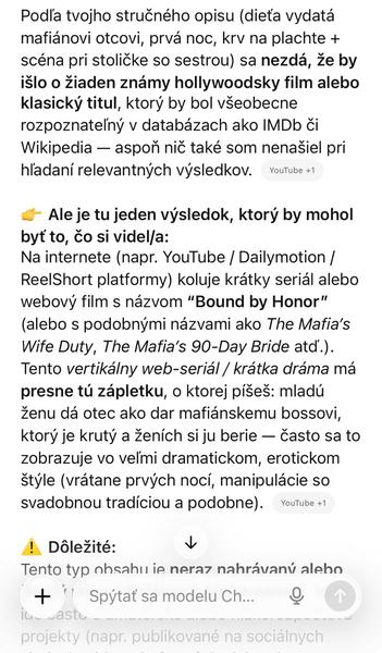 Ahojte, na FB mi raz vyskočila upútavka k filmu. Bol to eroticko dramatický, slečnu, pannu otec vydal za najväčšieho mafiána. Bola tam scénka, ako mali mať svadobnú noc, všetci hostia stáli za dverami a on ju vyzliekol, ale nebolo nič. Len si porezal ruku a krv poutieral do plachty. Potom ešte jedna scénka, ako ju priviazal k stoličke a musela sa pozerať, ako si to rozdáva so svojou sestrou (asi). Ale ona bola vždy vzrušená, keď sa jej dotkol.