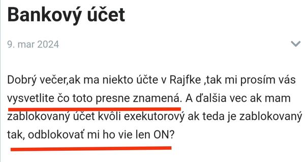 @vykrik1111 Ja som praveze jej prispevok pochopila tak, ze sa len pyta, preco ma stav bankoveho uctu taky a taky a ci iba jediny exekutor to vie odblokovat, nepostrehla som, ze by nanho hadzala vinu. Ale aj tak, posledne, co v jej situacii potrebuje, je osocovanie a poucovanie. Skor rady, informacie a podporu mozno.
