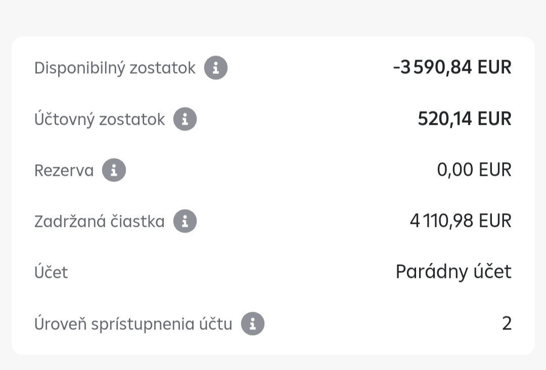 vyzerá to tak že si na účte mala 520e, zablokovala sa suma 4110e a teda si 3590e v mínuse