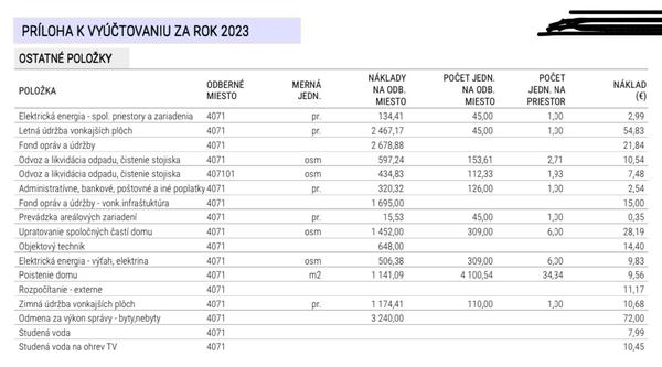 @sissi117 Skontroluj si merace, ake si mala zapisane pri preberani bytu. Kurenie moze byt vyssi naklad, lebo ste museli v decembri ten byt prekurit, neviem ci byvaju okolo susedia, mozno aj preto bol tenbyt studeny. Ale este takto..kurenie je 70% pausal a 30% spotreba, vyzera, ze oba vam pausal za cely polrok vyuctovala do decembra (ale zase vykurivacia sezona nezacina ovela skor, tak ti by nemalo spravit az taky rozdiel) A elektriku v tomto vyuctovani nemas, to je iny dodavatel (ten elektricky ohrievac, stromcek). Ostatne polozky su ok, ved byt vyuzivas, tak musis platit vsetko, ako by bol aj tvoj (kobku, vonkajsie priestory a pod. Ale zda sa mi to vysoke najomne, este asi aj zvysia mesacny predpis, aby neboli nedoplatky, radsej si asi hladaj nieco lacnejsie