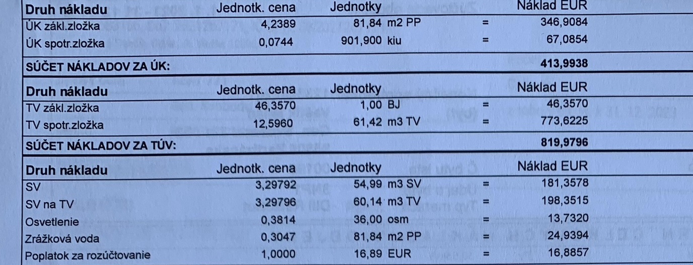 @ivuska027 Práve preto sa tomu nerozumiem, iba viem že zrátali to SV na TV + ten Súčet nákladov na TÚV a mám tu sumu dokopy v sume za teplú vodu