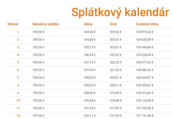 ak by niekoho zaujímalo, ako málo sa znižuje istina prvý rok pri požičanej sume 140 000€ na 4.5% úrok