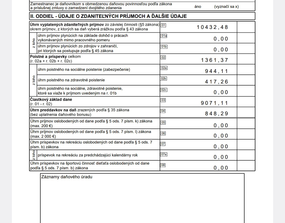Mal by vyjsť preplatok 197 eur (ak bol toto jediný príjem a neuplatňujú sa ďalšie "úľavy")