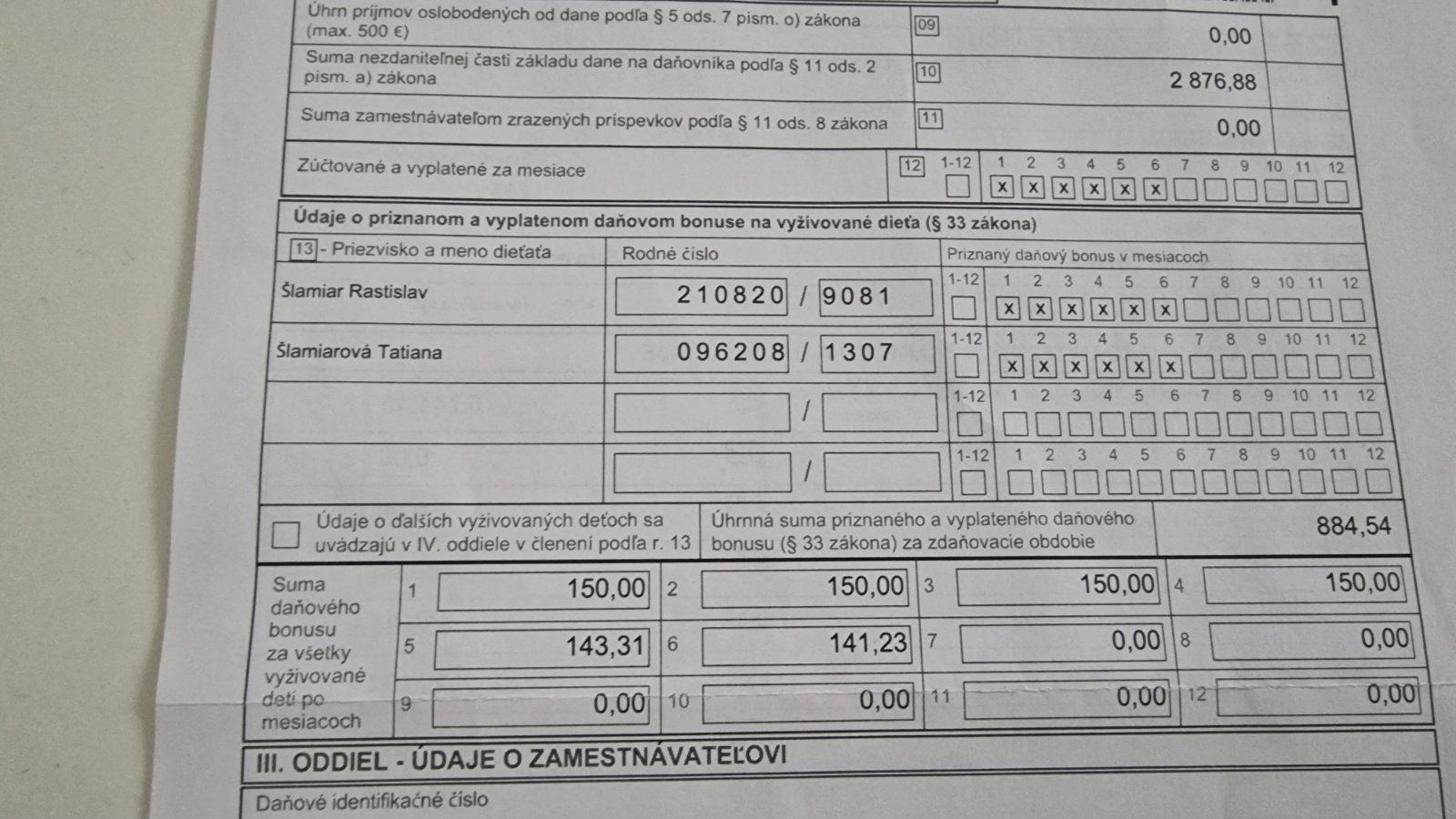- poberanie daňového bonusu.