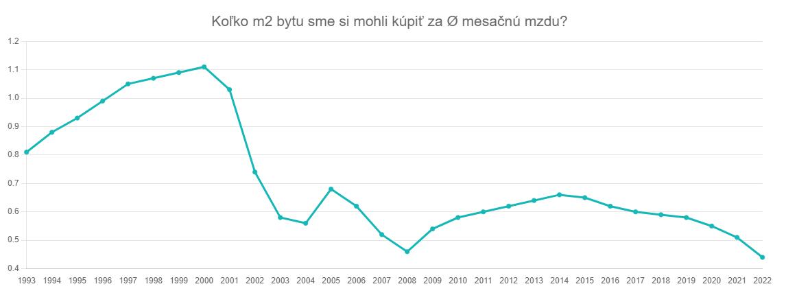 V roku 1993 ste si mohli za priemernú mesačnú mzdu kúpiť 0,81 m2 bytu