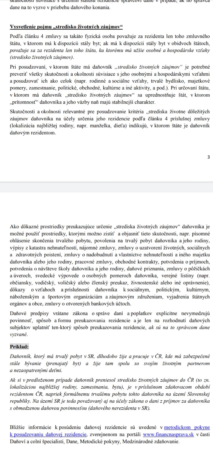 @sense ale veď preto som sa jej pýtala, daňovým rezidentom akého štátu sú. Mali by mať o tom potvrdenie. A pokiaľ sú daňovým rezidentom Švajčiarska,tak do daňového priznania na SK sa neuvedie príjem z CH, ale len príjem z prenájmu nehnuteľnosti na SK. A vtedy jasné,že nárok na DB nie je.