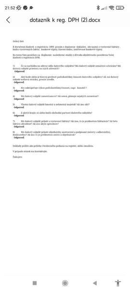 Dotazník k registrácii DPH