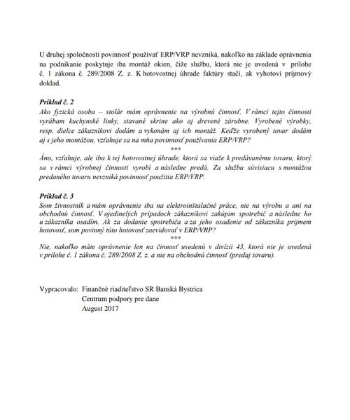 Pozri prílohu č. 1, povinnosť mať ekasu ak prijímajú hotovosť majú