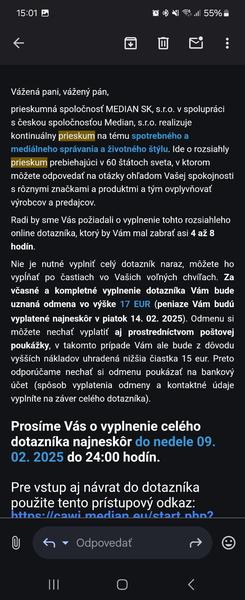 @deti95060810 jeden typ prieskumu co robim (lebo ma to bavi) zaplatili za rok a pol asi 15 eur postupne... inac iprieskum iba body a za to poukazky (tak za 2 romy 60 eur do alzy... raz za par rokov ponuknu 1 prieskum osobny za 30-40 eur.