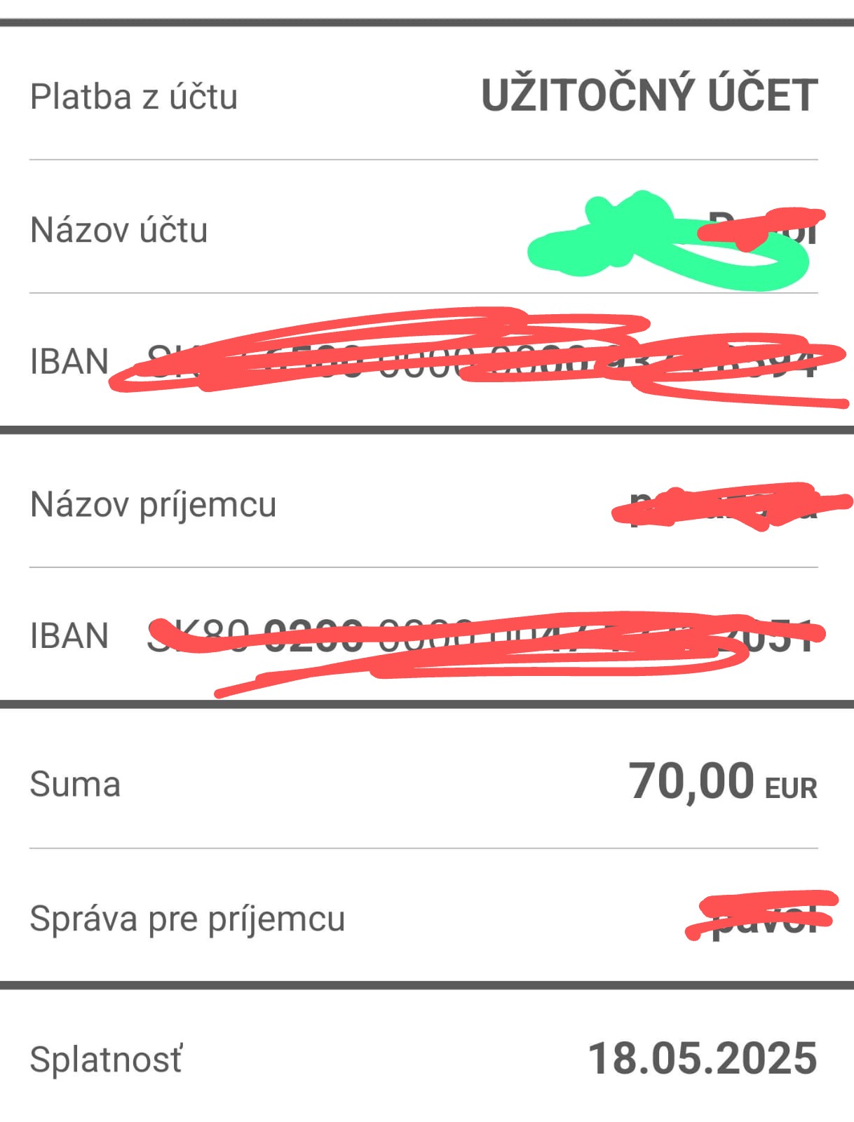 Ahojte baby nedávno som písala že mi kamarát mal požičať peniaze a posielal ich z poštovej banky poslal mi screenshot o platbe ale dosť zvláštny screenshot takže mu nejako neverím včera som sa snim pohádala a napísal mi že jemu včera po pol noci peniaze už odišli tak neviem čomu mám veriť prikladám foto screenshotu čo mi poslal to zaškrtnute som urobila ja ďakujem za odpovede 🫤🙂