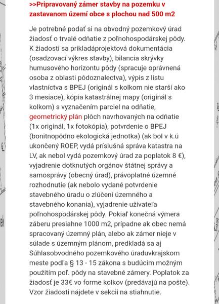 Keď som pozerala aj nejaké články na nete ohľadne tohto, tak niekde sa píše,že do 5000m2 ak je v území obce sa tam neplatia poplatky za zmenu na stavebný, niekde je písané inak 🤷