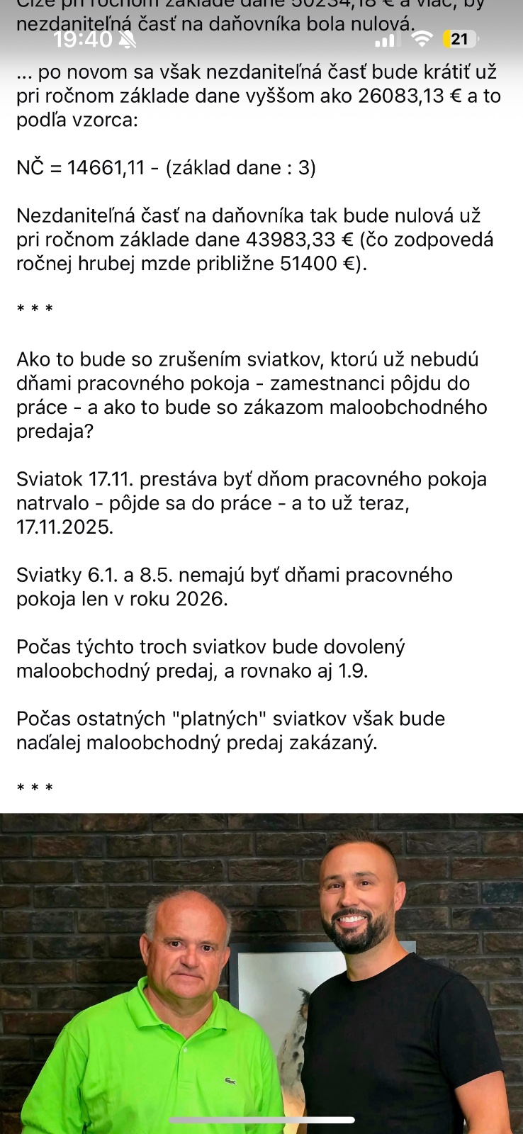 @janai1 no až také logické to nie je, preto sa pýtam. A evidentne ideme do práce už teraz 17.11. 2025 viď príspevok vyššie. Nejaké echo som mala, ale nebola som si istá, preto som sa pýtala. Niekto tu už dal príspevok, že už tento november to platí, ale netuším na základe čoho. Možno niektoré body tohto konsolidačného balíčka platia hneď, iné od 1.1.2026 inak si to vysvetliť neviem...