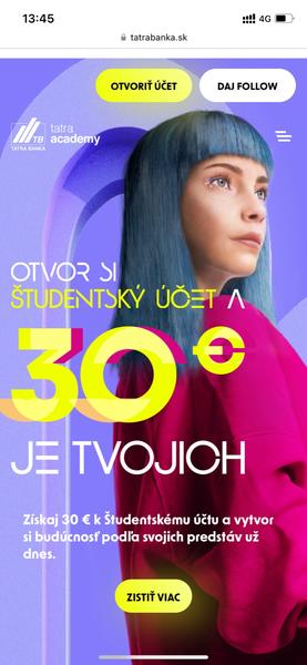 Na študenstký účet v Tatra banke som dostala 30 eur