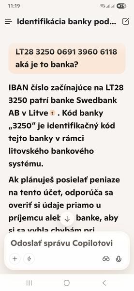 Vie niekto aká je to banka ?? LT28 3250 0691 3960 6118. Mám poslať 80 eur, ale mám obavy, aby sa mi neposlali k účtu. Lebo nepoznám tú banku