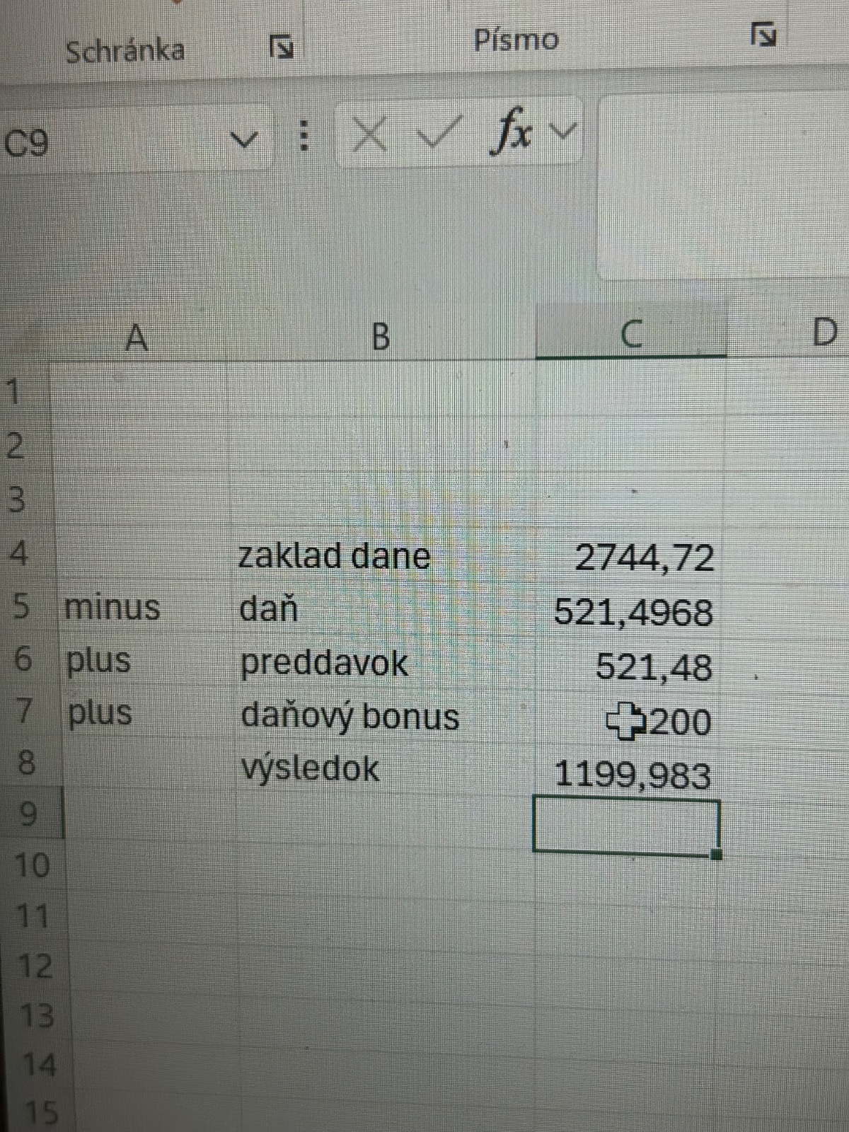 následne je vypočítaný daňový bonus: 678,30 €