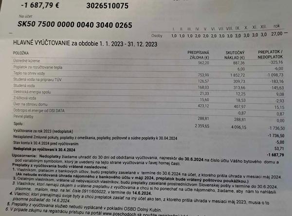 Nam prišiel nedoplatok za teplu vodu 1000 EUR a preddavky sme mali cca 700. Tiež nechápem 😁😁😁