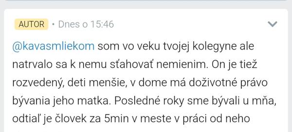 @som_realistka Aj tak by to bolo dobre, len ona by chcela aj niečo v rodnom meste, kde chodí pracovať 2 dni v týždni. Platiť si ubytovanie by mohlo byť mesačne aj vo výške prenájmu, (napr. 8 alebo 10 dní po okolo 100€), keby mal prenájom nižší, tak by si mohla radšej prenajať garzonku a keby nato mal tak aj si kúpiť.