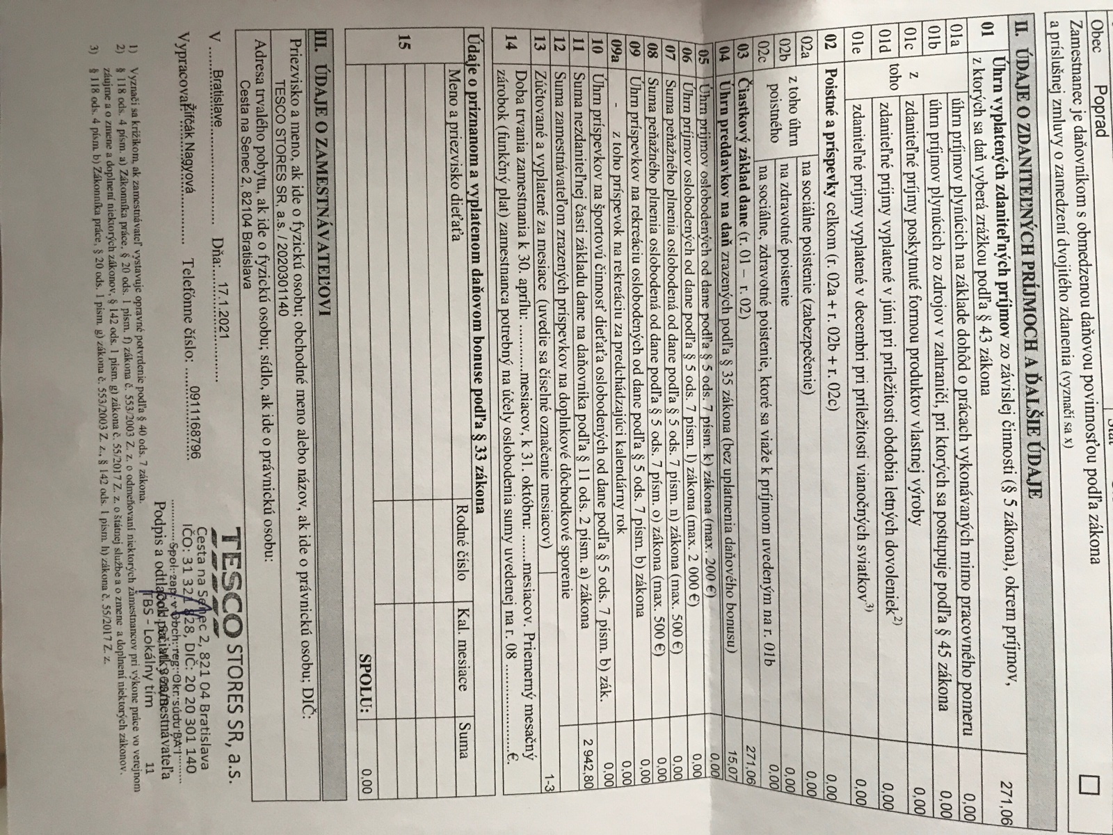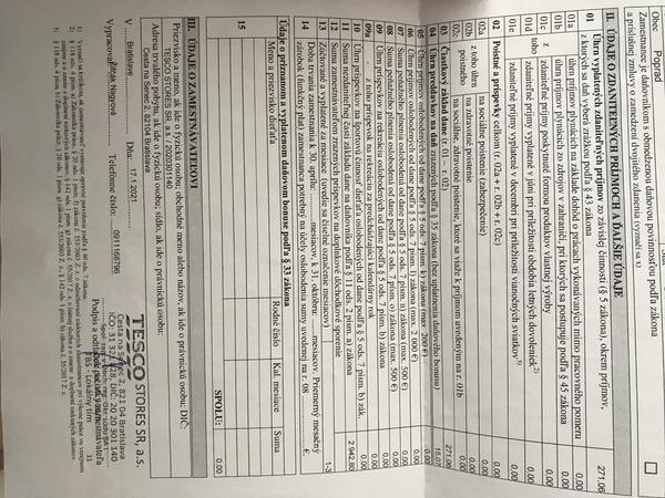 Dobrý večer, mám otázku ohľadom daňe z príjmov ak sa niekto do toho vyzná tak mi poraďte, Prišiel mi papier s tesca lebo som tam brigádovala no prišiel Covid-19 tak má vyhodili, preplácajú sa zdaniteľné alebo nezdaniteľné? Čo k tomu potrebujem? Mám si ísť aj do tesca po výplatné pásky alebo ako?