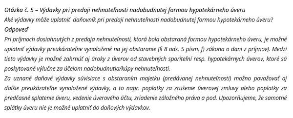 ChatGPT: Nie, zaplatené úroky z hypotéky sa nepočítajú medzi výdavky, ktoré môžete odrátať od príjmu pri predaji nehnuteľnosti na účely výpočtu dane z príjmu.