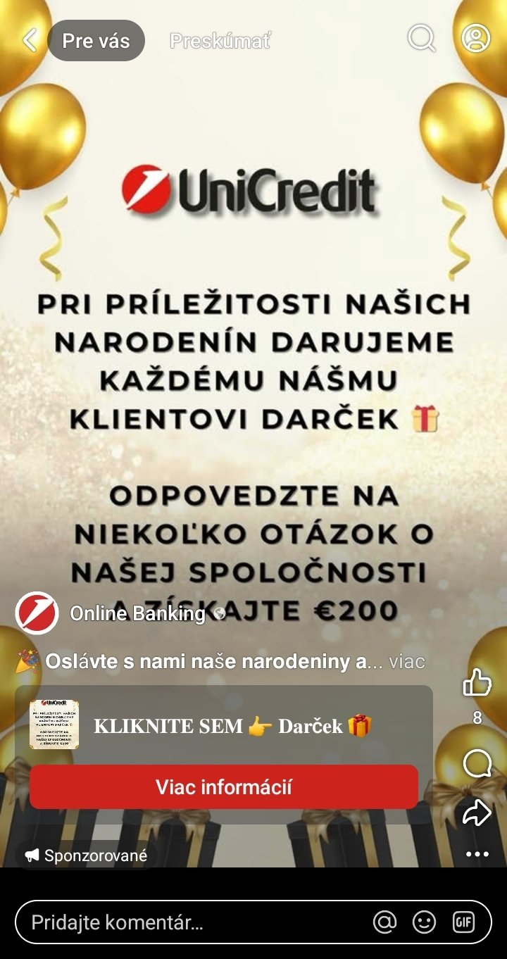 @floren veď ja mám normálne like na FB stránku UniCredit bank... neprišlo mi to divné ich príbehy sledujem....