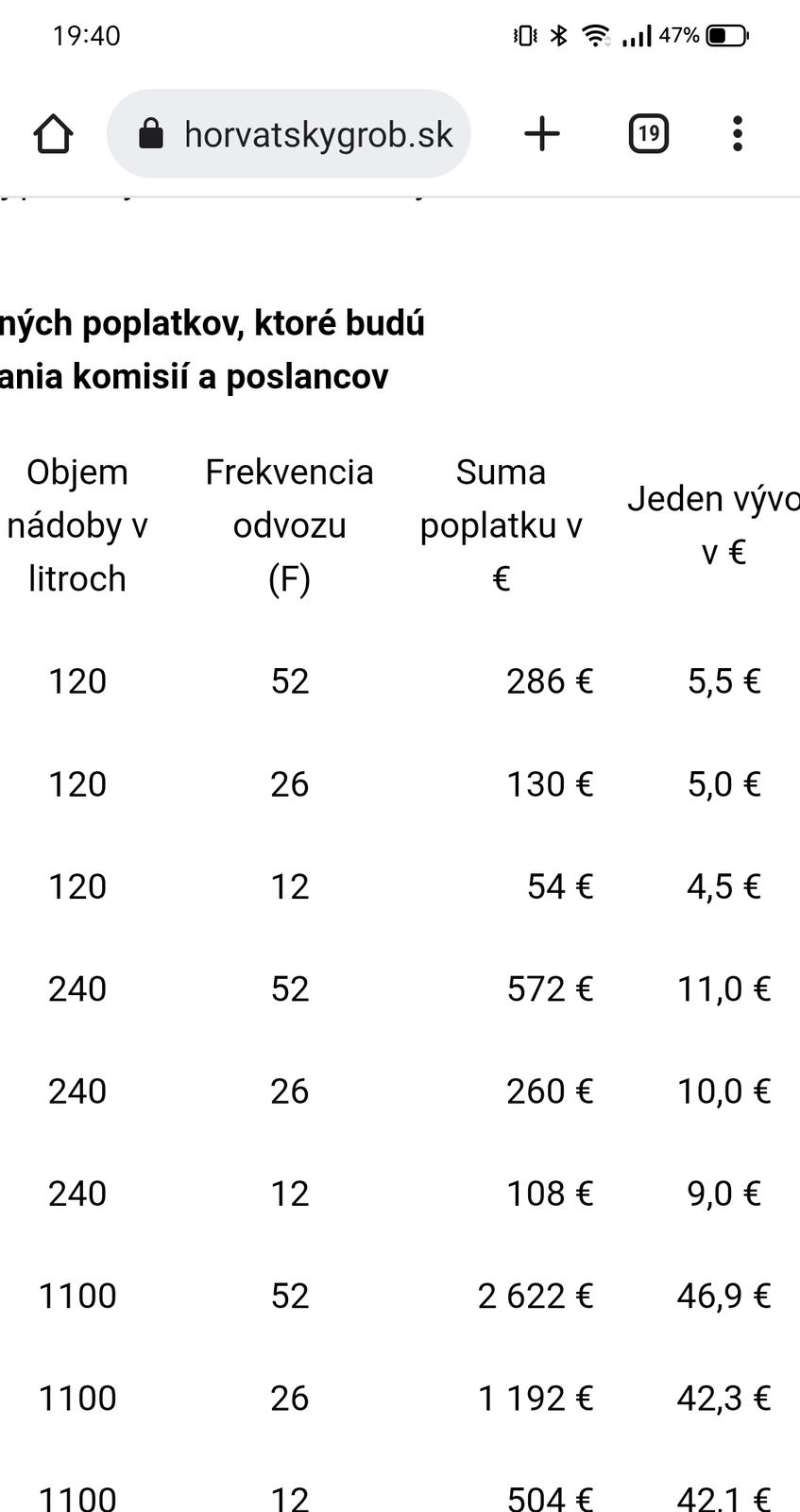 Viem, že diskusie na FB z okolitých dedín boli búrlivé viacerým dedinami zvýšili poplatky nás vyvážala AVE...chcem si len porovnať.