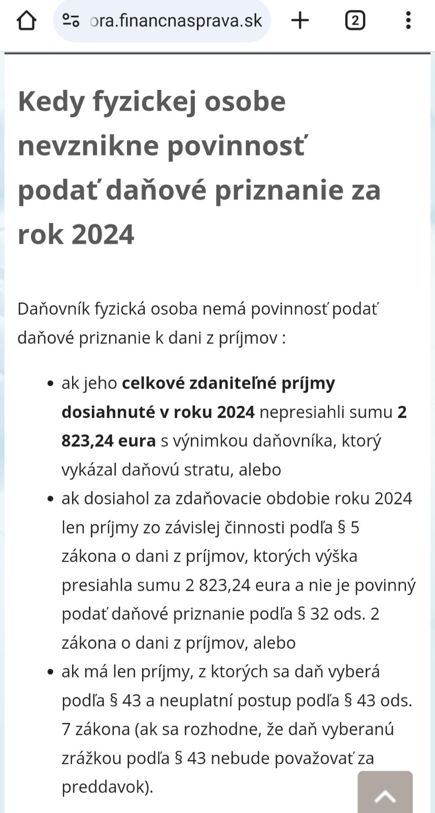 ak bol toto v roku 2024 tvoj jediný príjem, tak nemáš povinnosť podať daňové priznanie, pretože tvoj príjem nepresiahol 2823,24 Eur