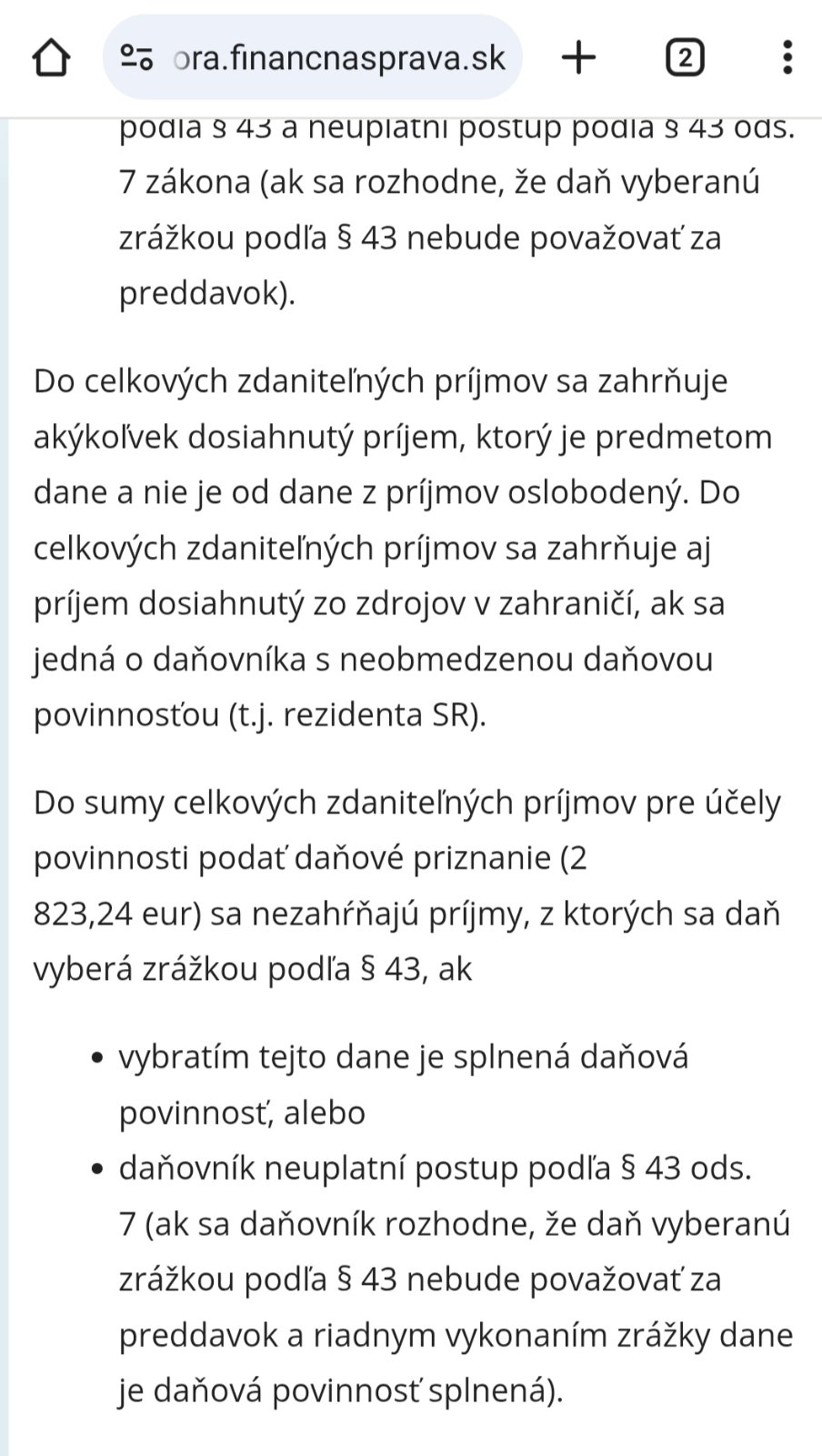 Ahoj. Minulý rok som pracoval brigádne v zahraničí. Som študent vš. Zarobil som 55 200 korún ( cca 2206 €) ( od 7. Do 12. Mesiaca) . Musím niekde podávať daňové priznanie alebo niečo iné? Ďakujem