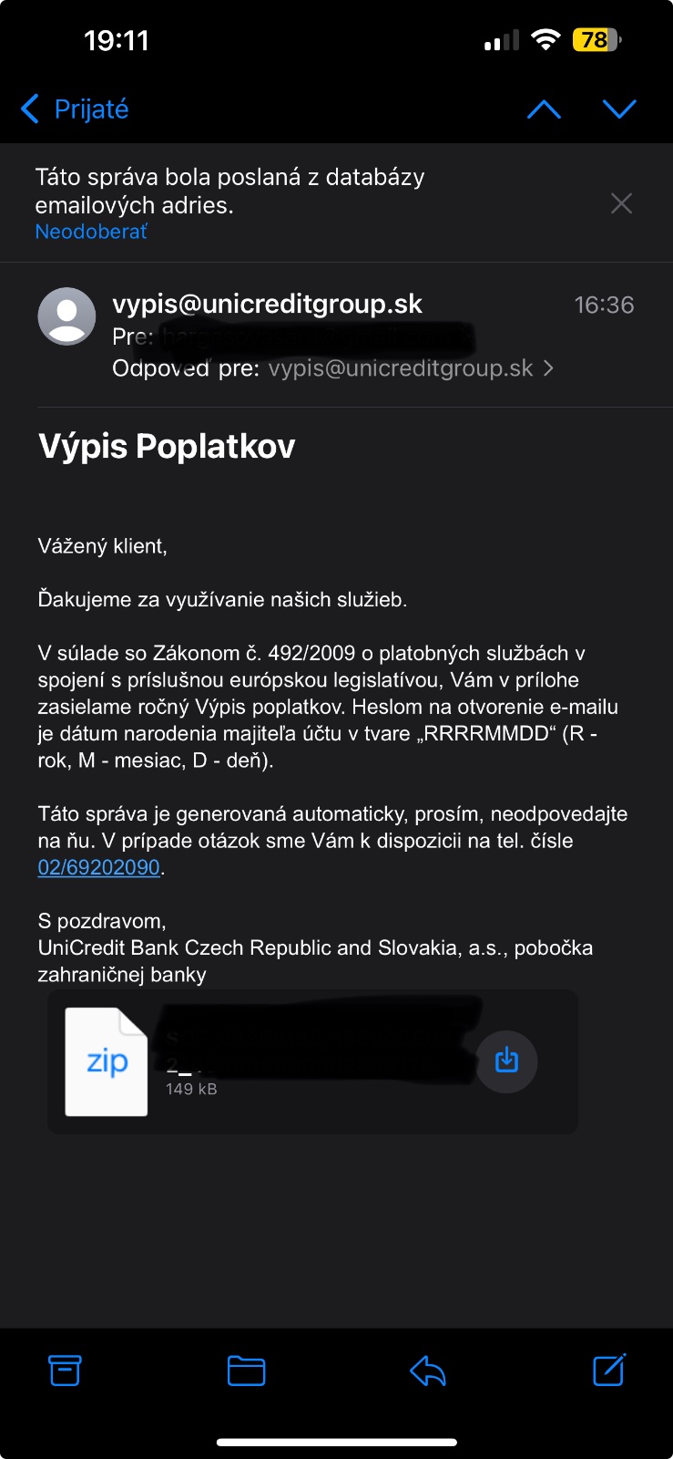 Ahoj aj vám prišlo včera alebo dnes na email vypis za minulý rok? Ze výdaje ci co