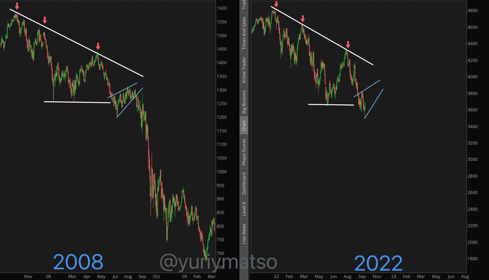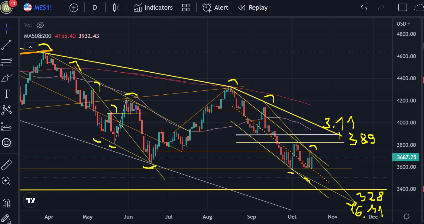 @michal711 Cary mary. 🙂 Do 3.11 by sme mohli byt hore SPY na 390 a 16.11 dole na 328. Uvidime, ci sa to splni. 🙂 Tam bud pride crash na zaklade nejakej bad news, alebo este jedna bear rally up o 70 bodov na 395. Potom dalsi crash dole, o 100 bodov dole pod 300 a tam crash? Ak fed nezmeni politiku, postupne sa mozme dostat niekam ku 220.