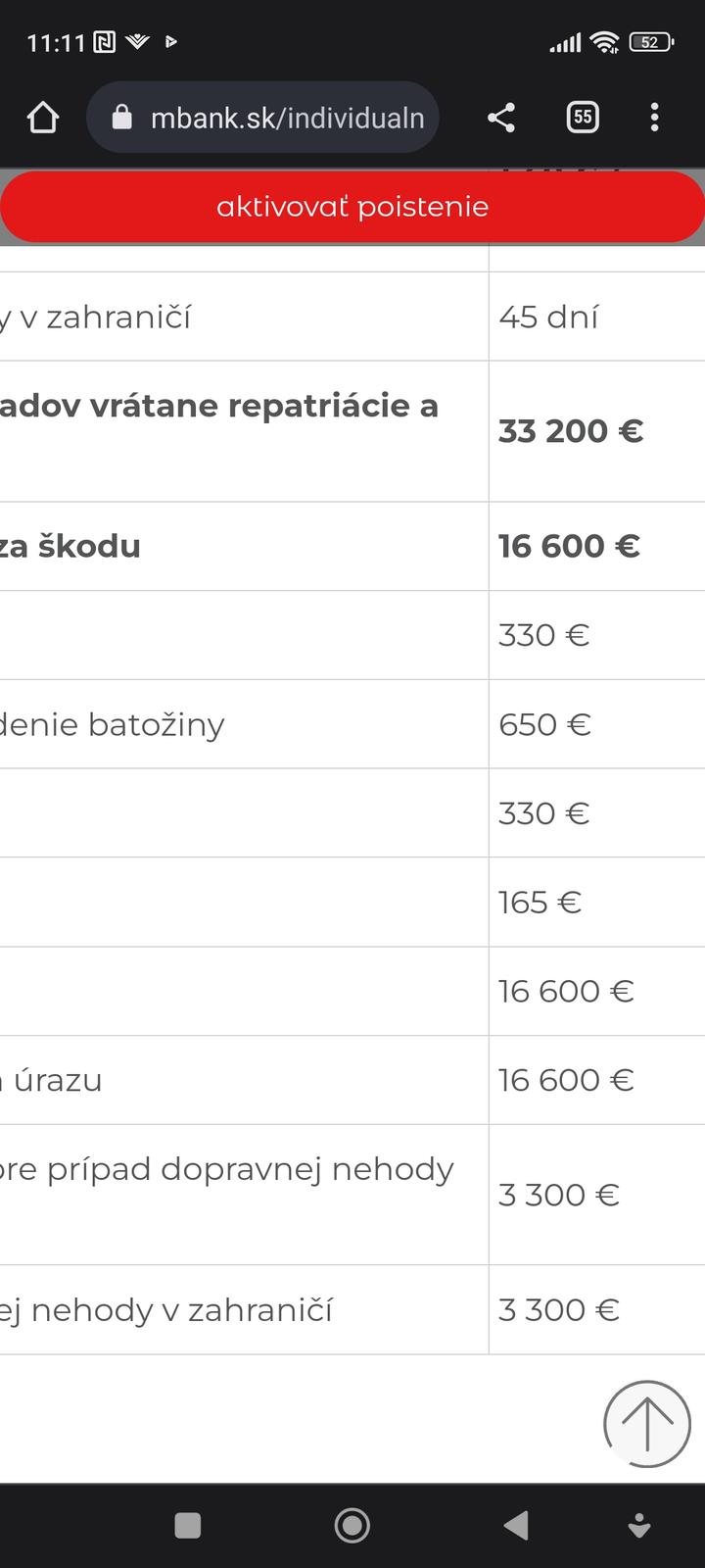 @sweet20 nemám konkrétne len čo je na stránke mBank,to je na manželovej karte len viem že platí 2,2€ mesačne...len som s ním volala že to je asi nepostačujúce a že je to v pohode no neviem