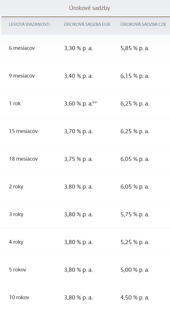 Momentálne dávajú úrok 3,6% p.a. pri vklade na 1 rok.