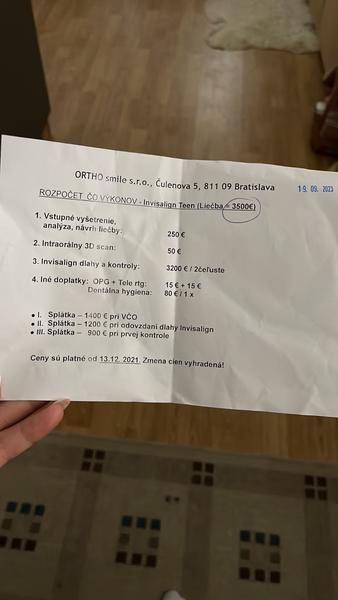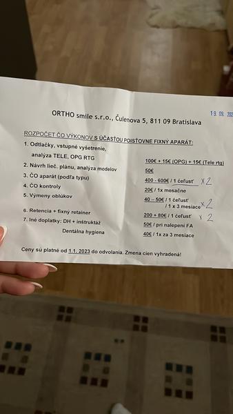Normálne som to zdokladovala a bolo. Vyšlo nám to tak, že preplatili 200 eur, keďže koncom roka dávali horný a tento rok spodný. Tak vlastne syn minul všetko zubný benefit na to. Okrem dentálnej, tá je zvlášť.
