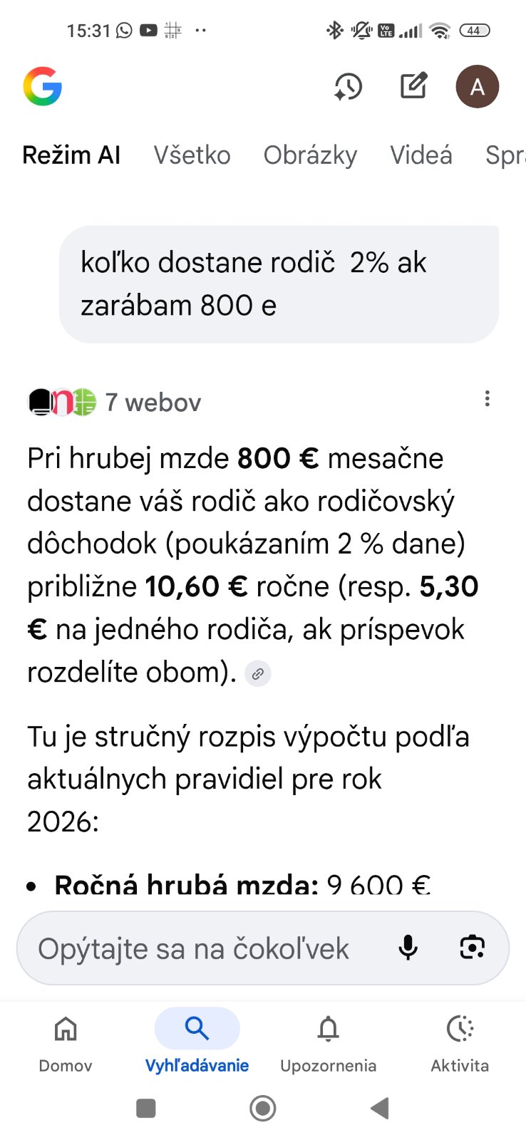 Vie si rodič vypočítať mzdu dieťaťa, ked mu poukáže 2% z daní? Ide o mojich rodičov, nemám problém im poukázať, ale su to zaryti "ficovoliči". Tie reči, ako sa majú mladí teraz dobre, zarábajú dobre, dostávajú na deti peniaze a pod., ako mame byt vďační Ficovi. Keď sa s nimi rozpravam, akoby som bola v inom svete (potraviny sú lacné, čo sa sťažujeme, konsolidáciu treba, ľudia majú peňazí dost a pod.). Sme s muzom obyčajná slovenská rodina, 3 male deti, sme na nich sami bez pomoci starých rodičov, obidvaja robíme na plný úväzok, šetríme kde sa dá. Nezarabáme vela, myslim si ze skôr podpriemer.