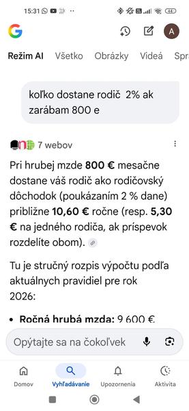@anonym_autor dá sa to vypočítať, ale myslím si (nie som si istá), že ak poberáš bonus na deti, tak budeš mať výsledok znížený o bonus na deti, takže tie 2% budú trochu skreslené. Aspoň minulý rok to bolo tak, že manželovi vyšlo na 2% nula, lebo mal také vysoké bonusy na deti (vtedy boli ešte vysoké), že celkovo mu vyšlo, že nemôže darovať nič. Nejak sa to tam pokrátilo. Predpokladám, že aj tento rok to bude tak isto.