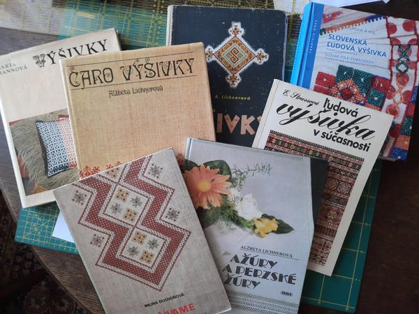 Všetky horeuvedené, z novších napr. Slovenská ľudová výšivka od Anny Schneiderovej alebo Slovenská ľudová výšivka - inšpirácie od Diany Némethovej.