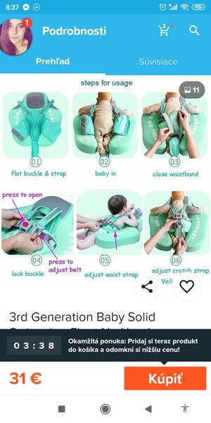Caute, dik za odpovede. Myslela som do vody na "plavanie", nie do vane. Sa musim lepsie vyjadrovat. 😉 Ved ja som kupila v dracikovi, ale to je az od 1 rok, alebo 11kg. A potrebujem od pol roka.