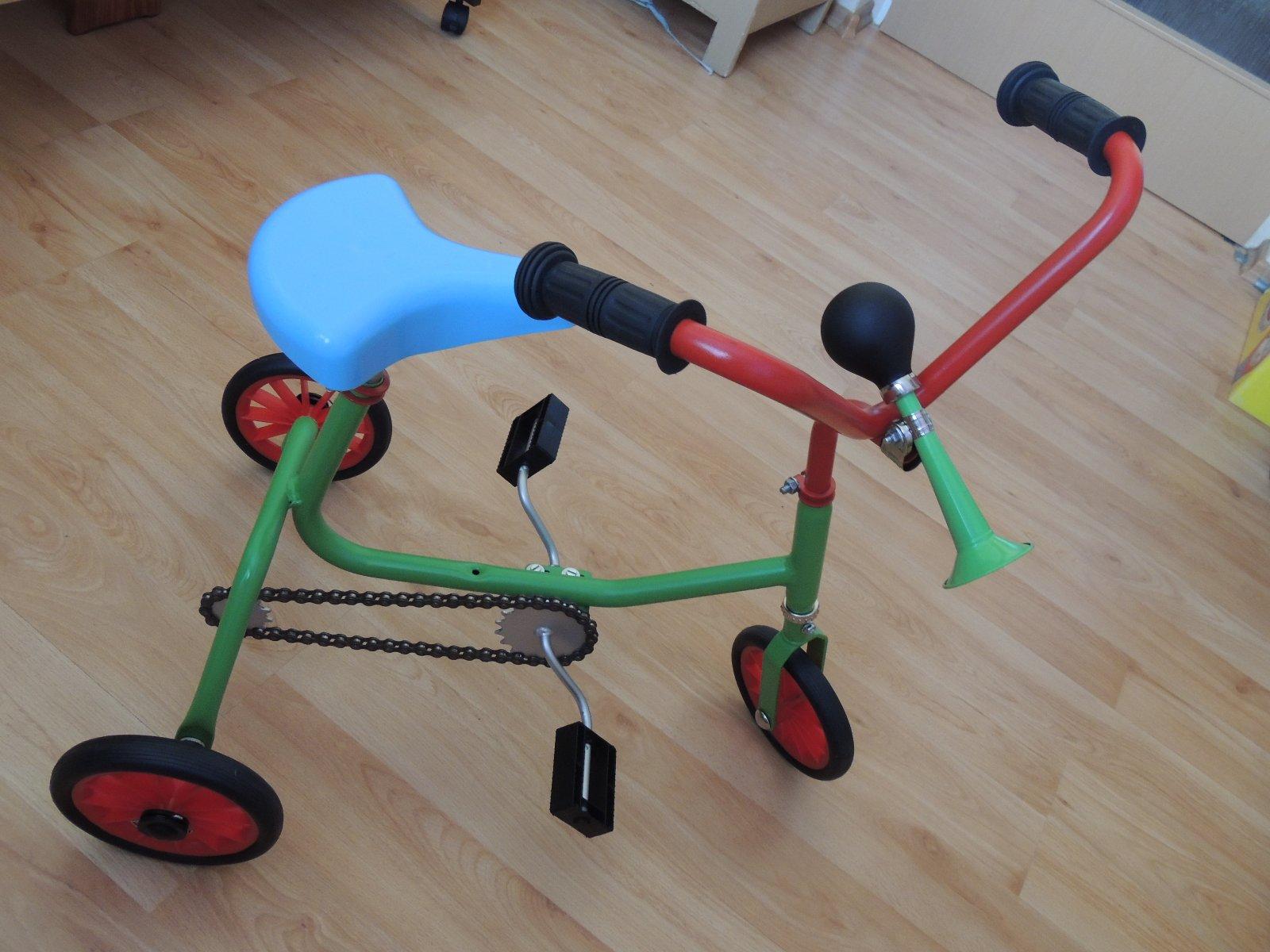 Baby obnovujem temu, kde teraz zozeniem klasicku, stabilnu, dobre ovladatelnu trojkolku s pedalmi v strede ( nie na kolecku vpredu) s gumennymi kolesami pre 2r. dieta? Cena do 100e